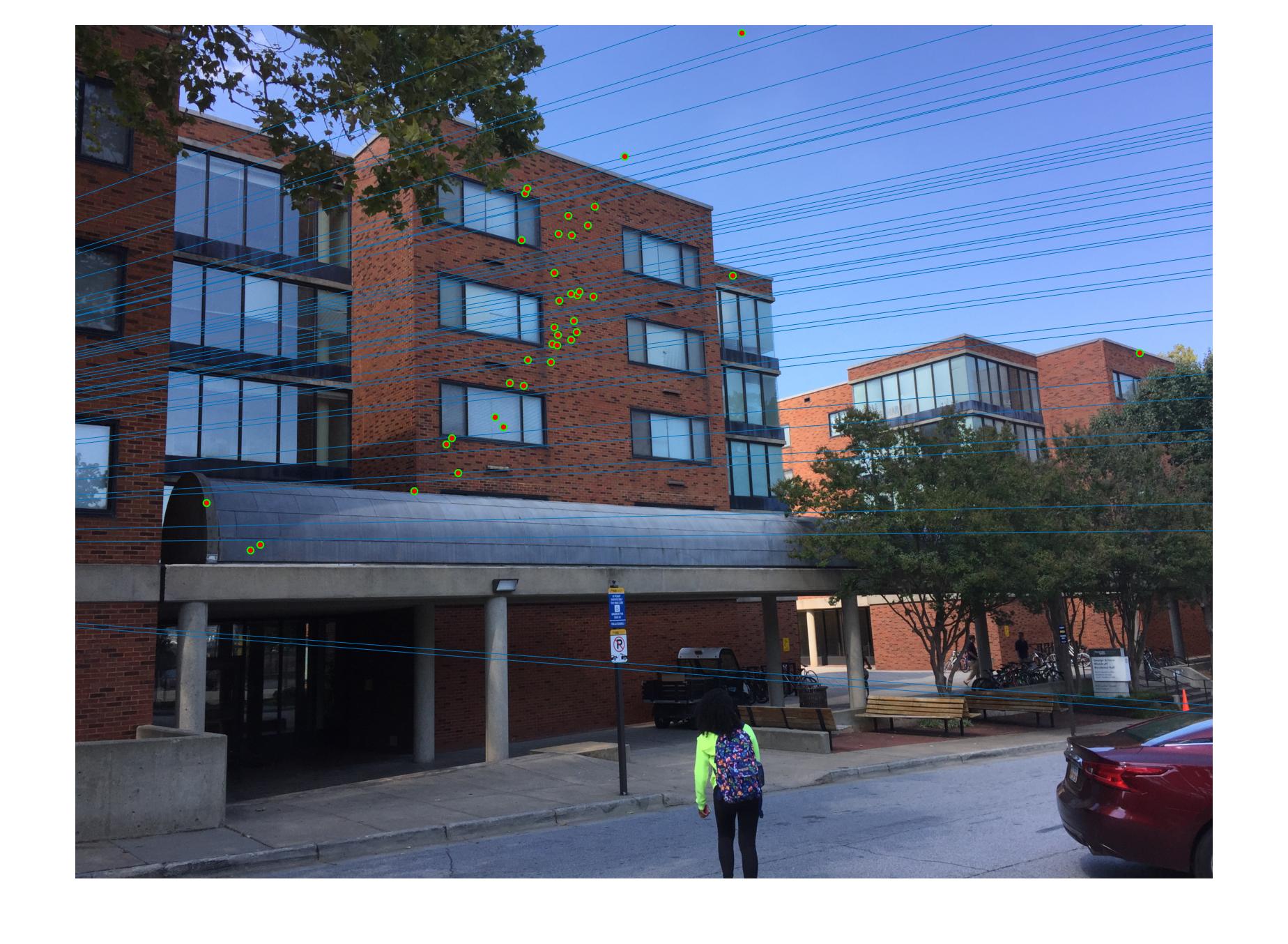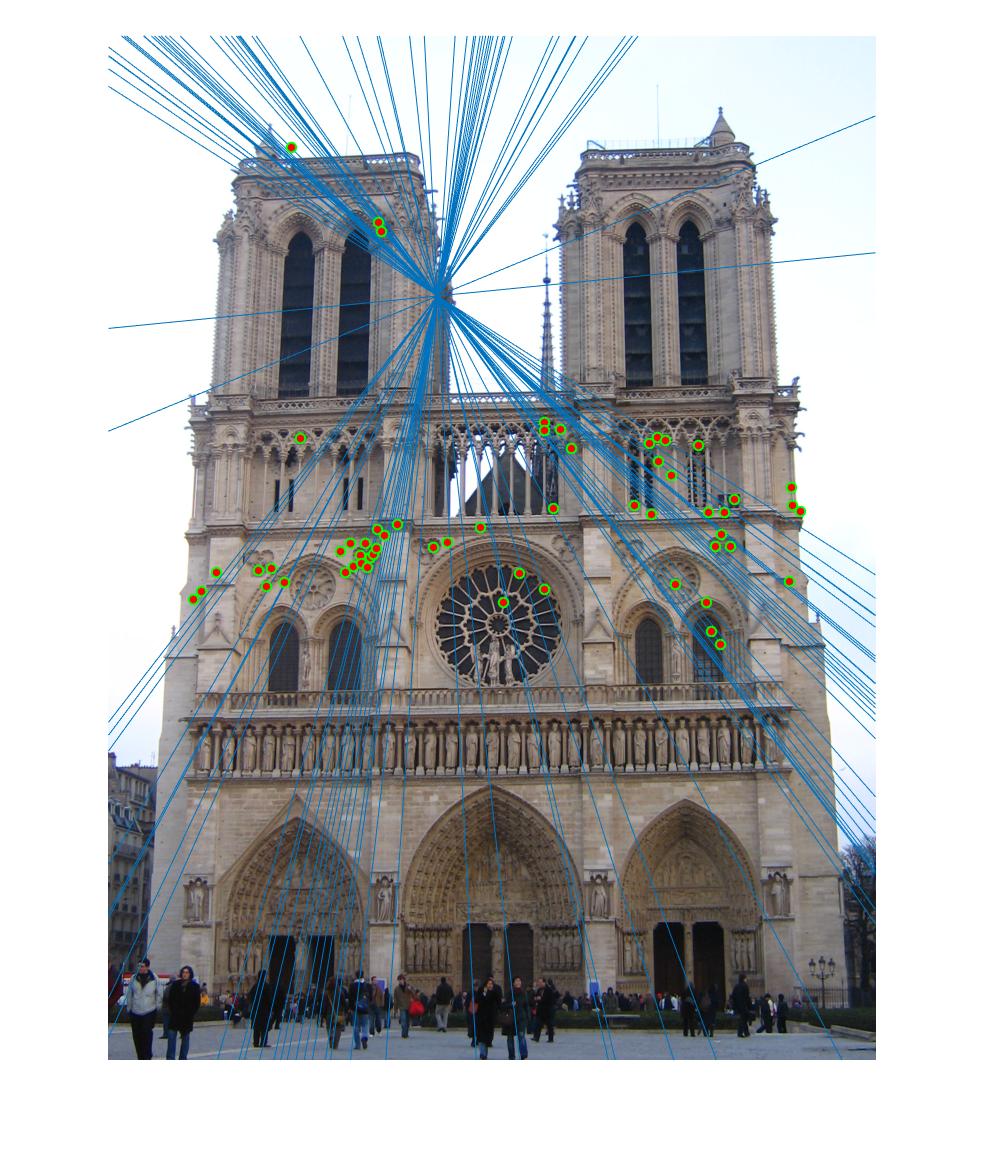 The goal of this project was to work with scenee geometry and camera calibration. This was broken in to three parts. The first deals with camera calibration, estimating the projection matrix. The second part is to estimate the fundamental matrix so that we can map points in one image to it's epipolar line in another image. The fundamental matrix has several useful properties. In the second part we use ground truth matches to help estimate the fundamental matrix. This produces a very accurate fundamental matrix. The third part is to use point correspondcess produced by VLFeat's SIFT implementation. The points are not as accurate as the ground truth points, but there are more and we can use RANSAC to estimate the fundamental matrix.