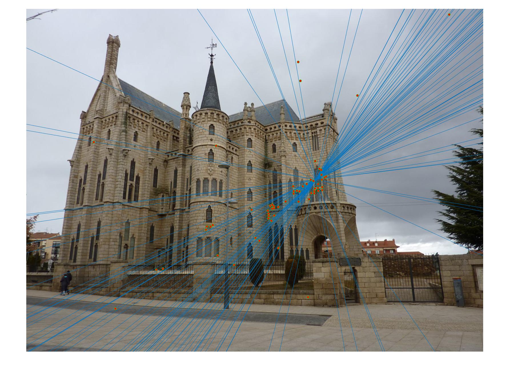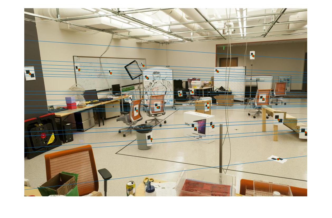 Here, we show a visualization of epipolar lines for the given pair of images.
