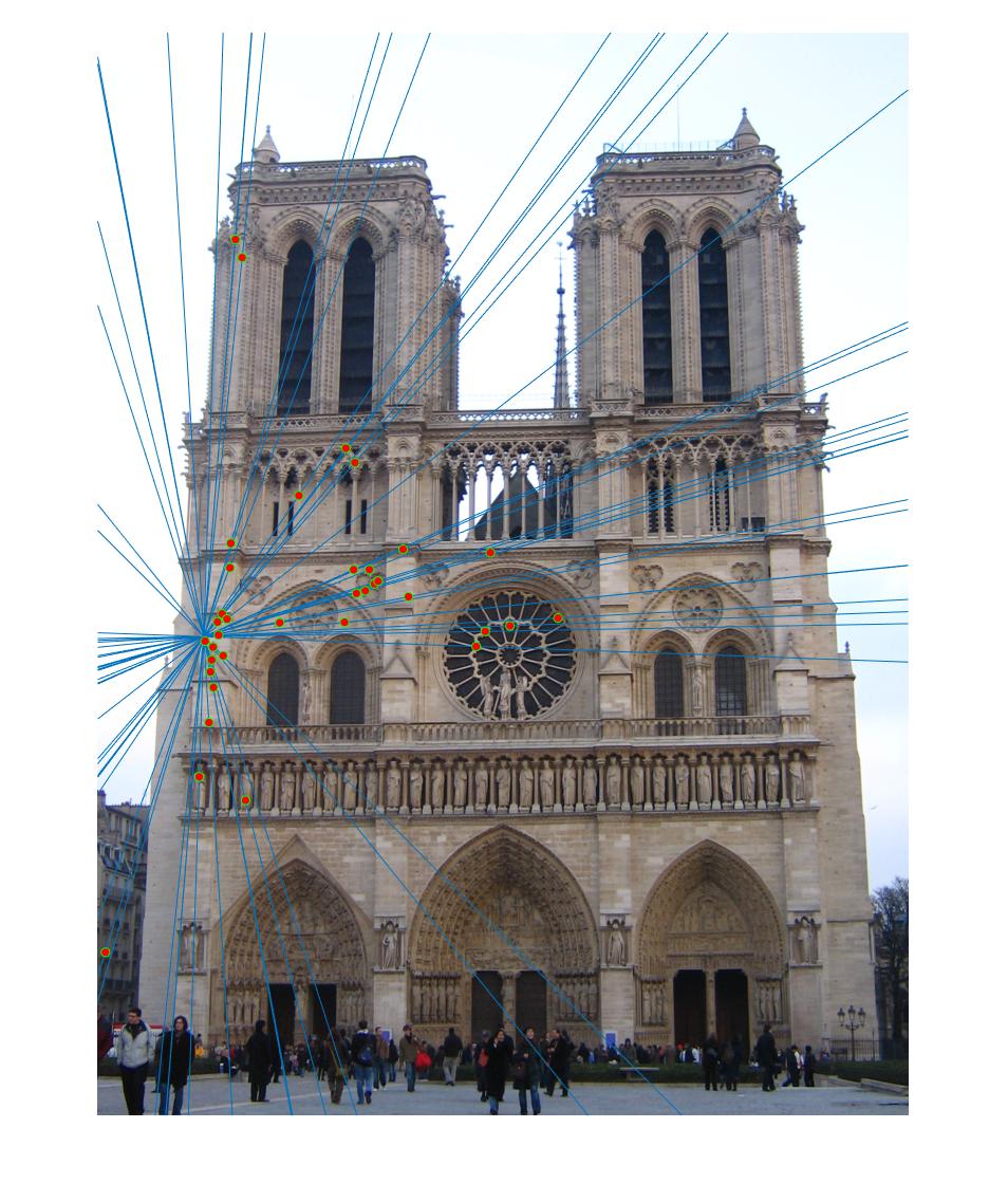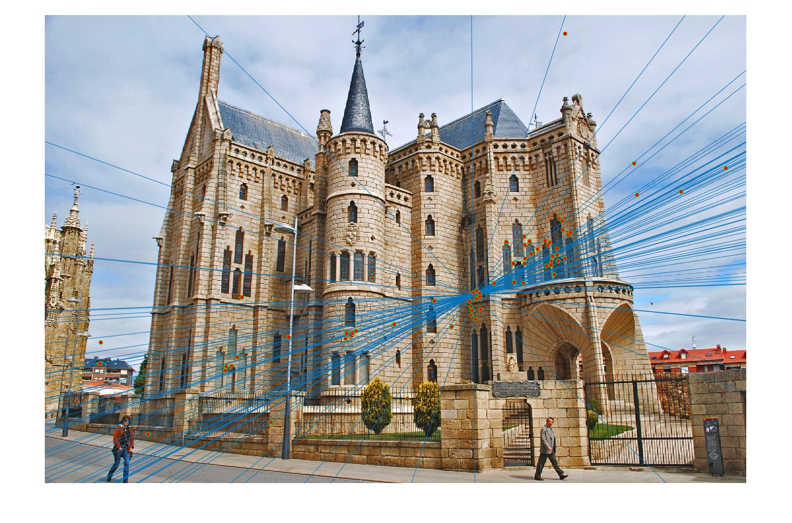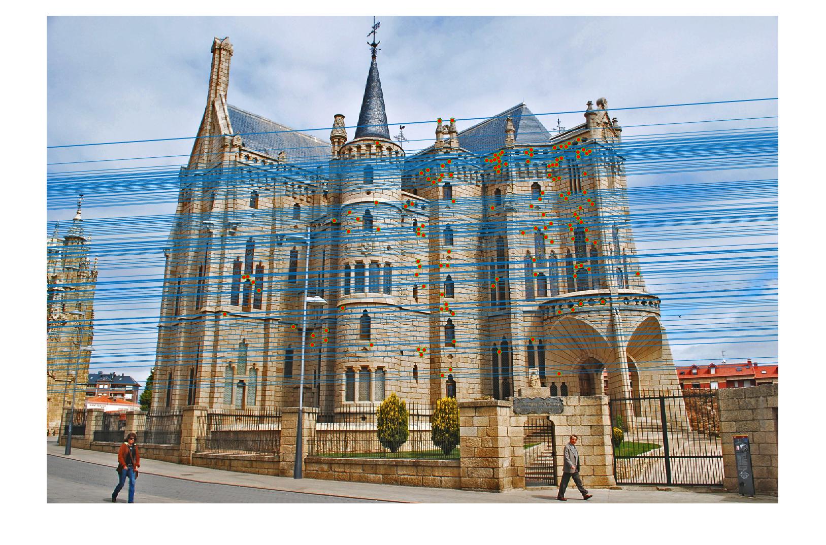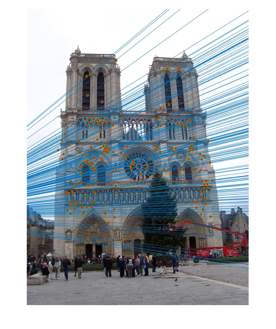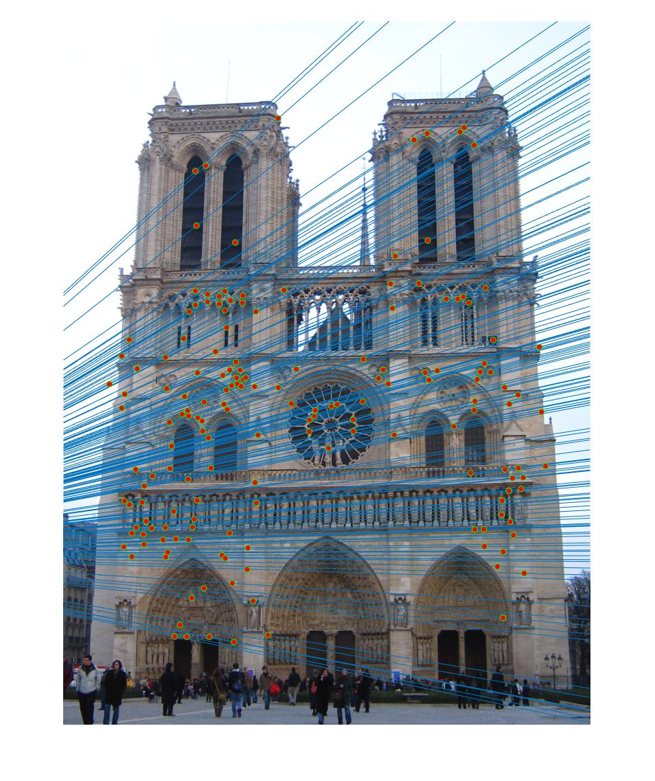 . We then check the fundamental matrix estimation by plotting epipolar lines.