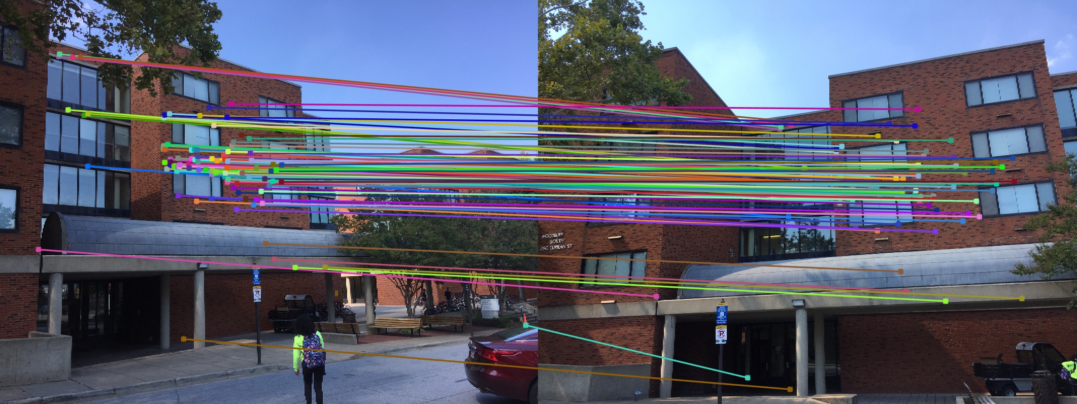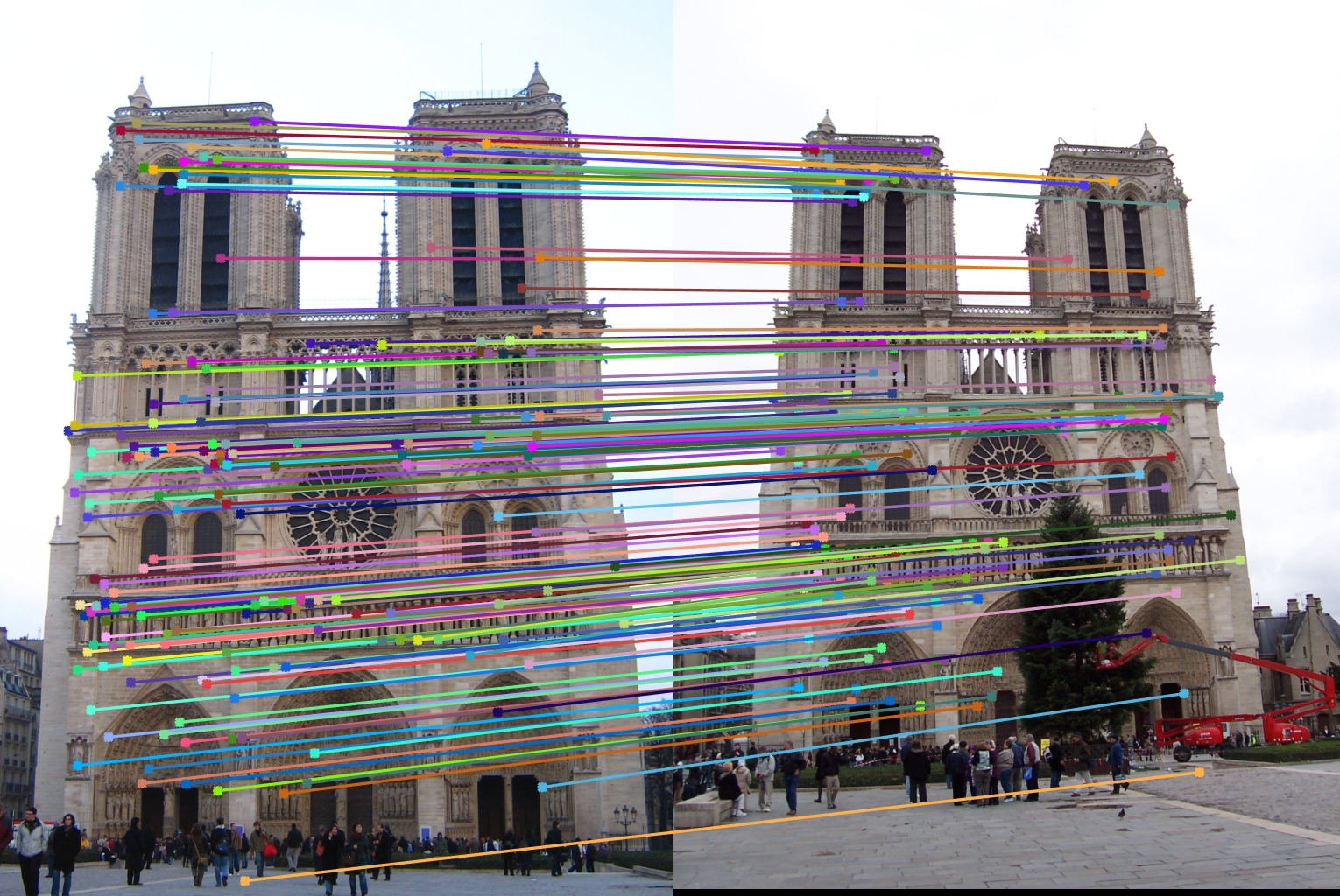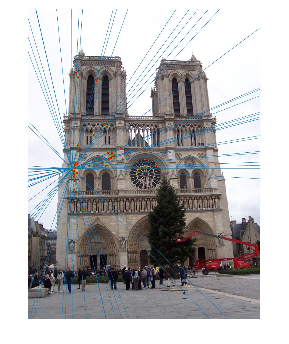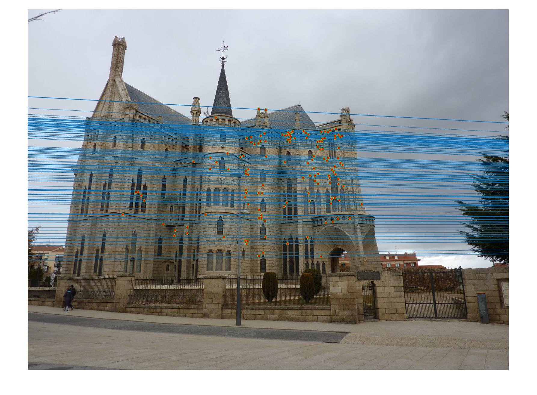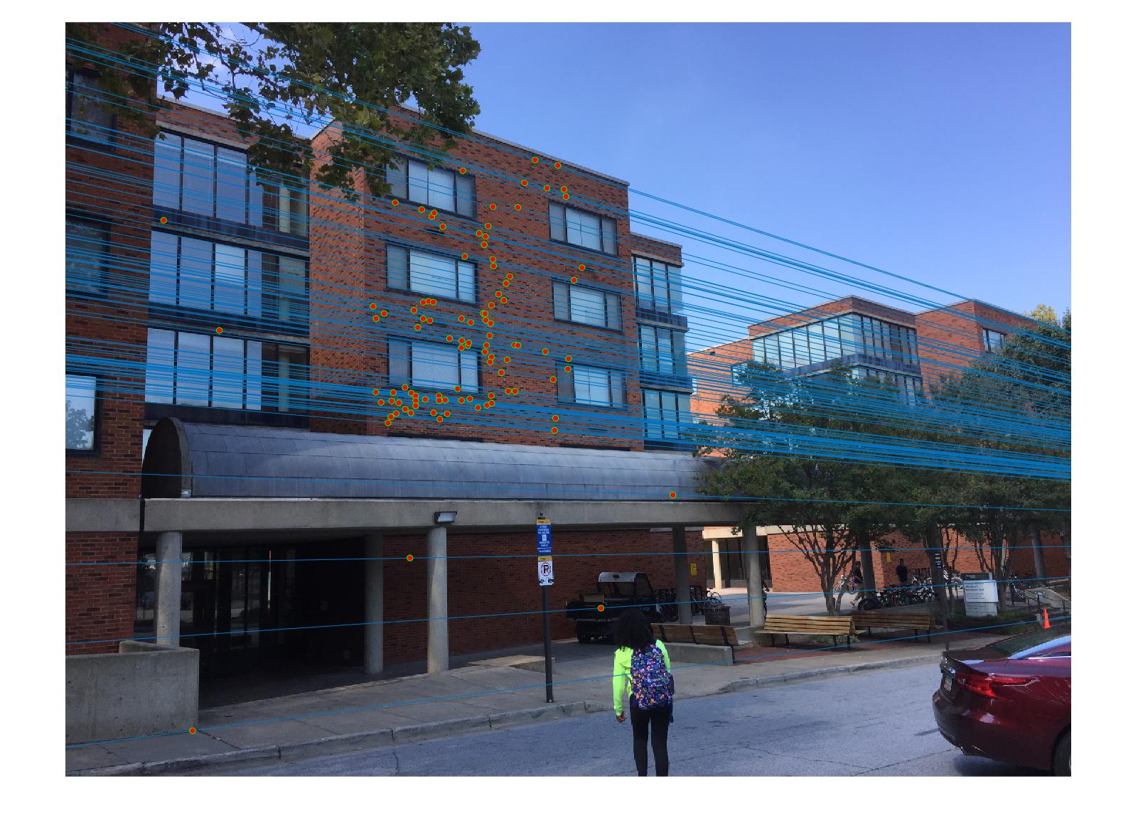 . We then check the fundamental matrix estimation by plotting epipolar lines.