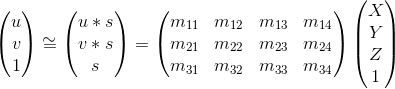 For moving from 3D world coordinates to 2D camera coordinates, we can utilize this equation: