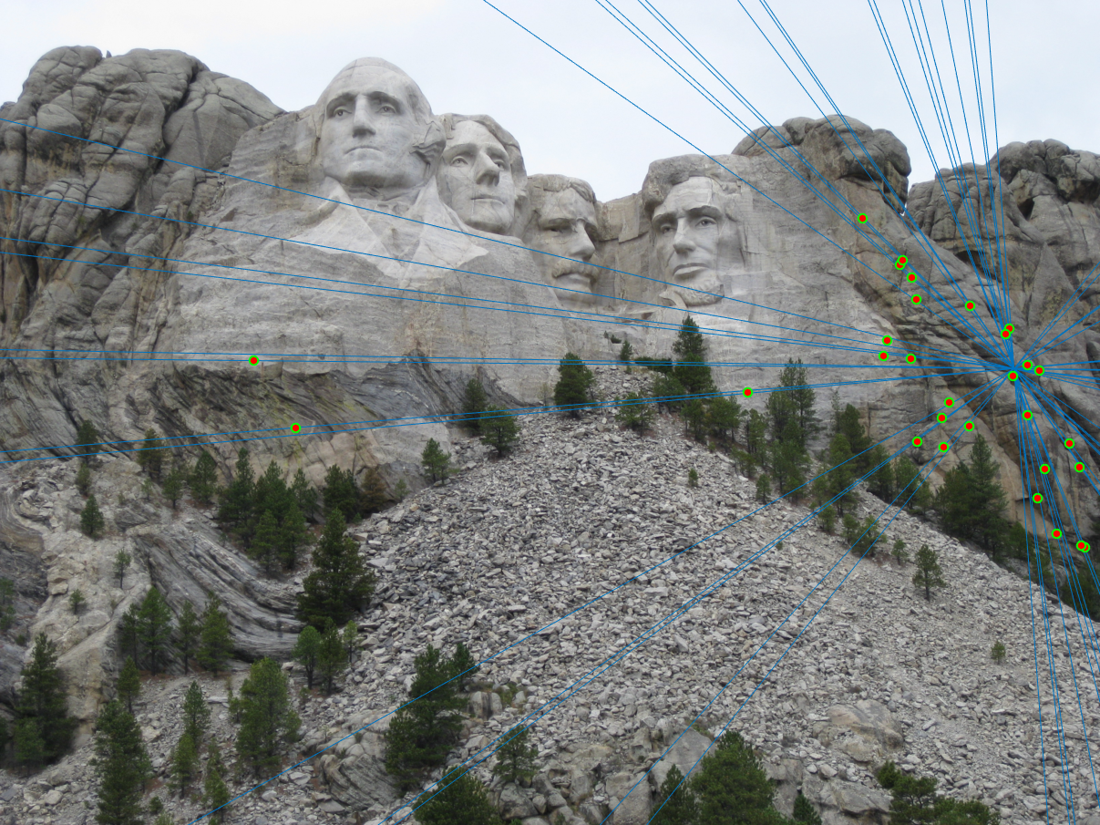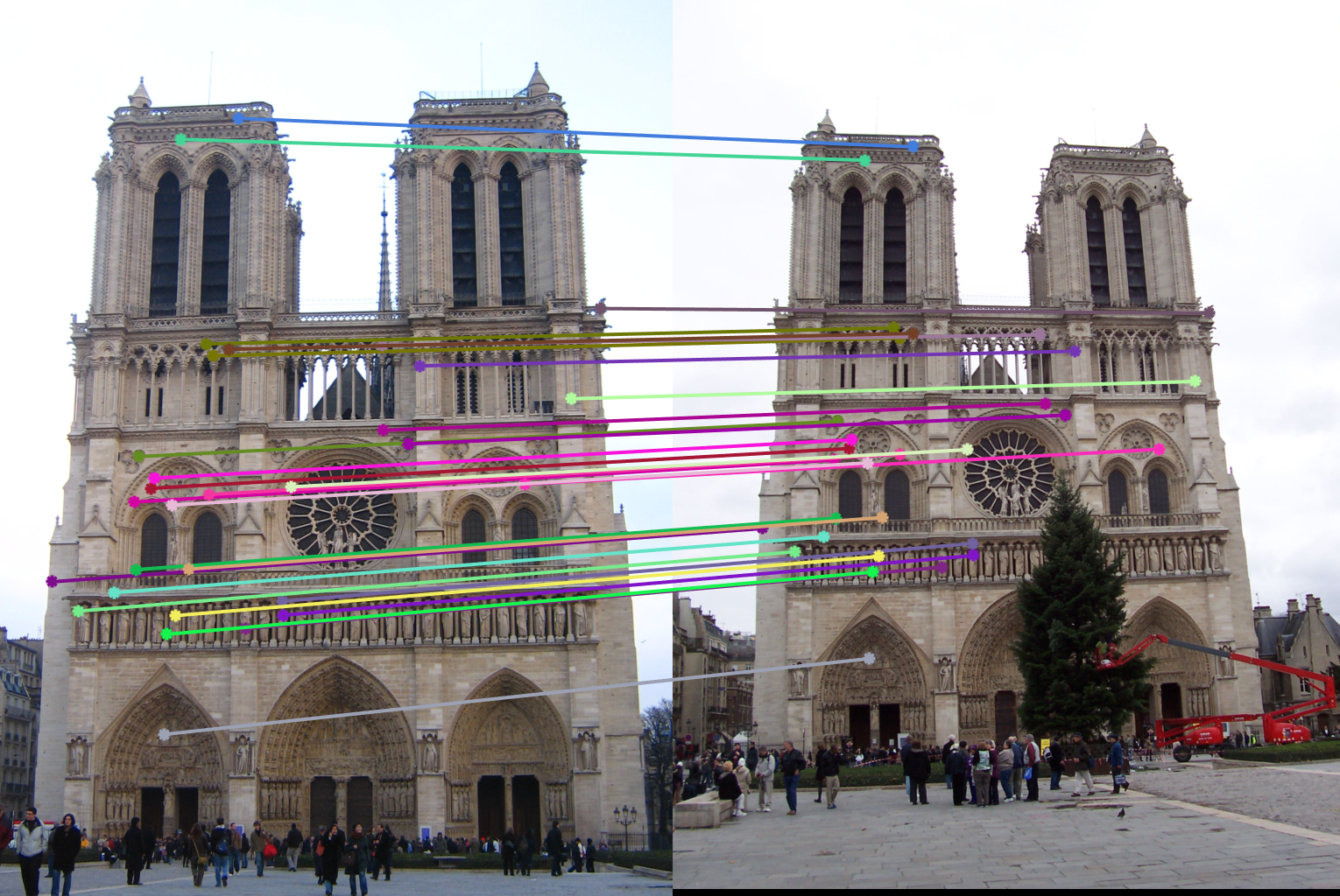 For the Mt. Rushmore and Notre Dame images, 30 inliers are randomly chosen to be displayed for a cleaner visualization.