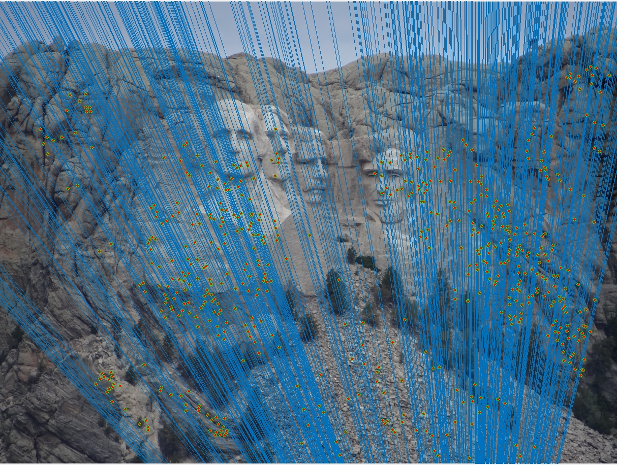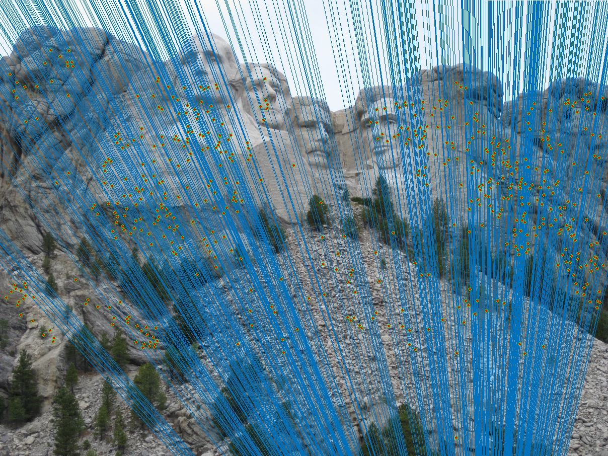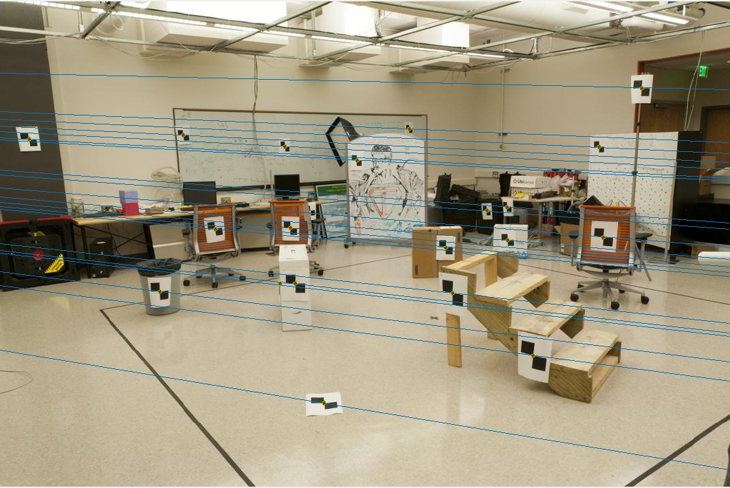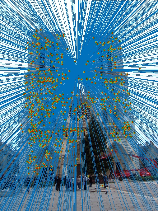 TPart 2 works on the estimation of a fundamental matrich, which maps a point in one image to the line in the other image. The fundamental matrix is a 3 by 3 matrix; thus, we estimate 9 entries of the matrix. Since the fundamental matrix is not full ranked, we only need 8 pairs of the points. This means that we estimate the 9 parameters with 8 inputs and 1 constraint. The author uses a similar method to the one used in the Part 1 to estimate the entries in the target matrix. Two main differences to the Part 1 is