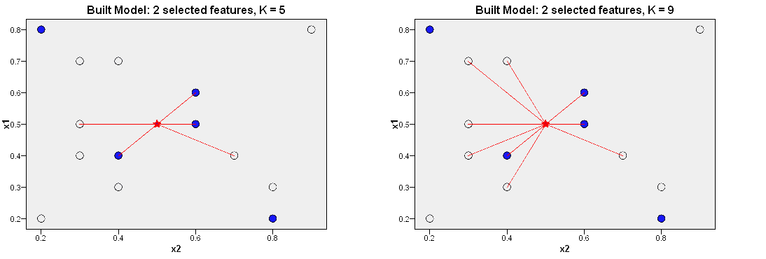 Figure : Examples of nearest neighbour classification using k = 5 and k = 8.