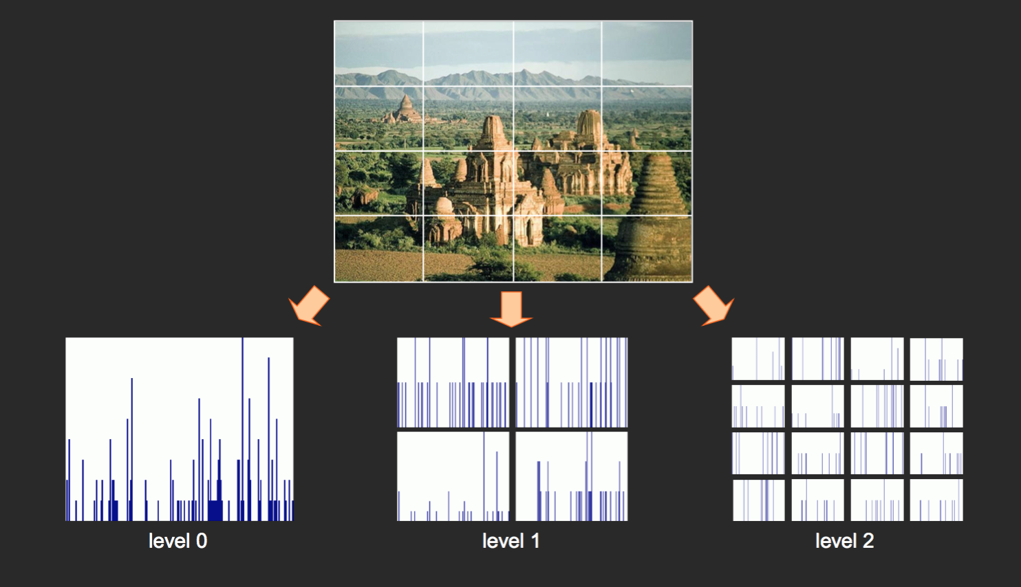 Figure : Example of level 0, 1 and 2 of the spatial pyramid.