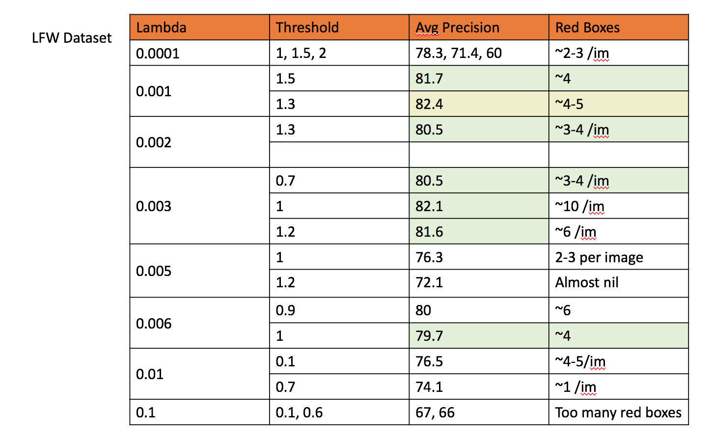 In an attempt to balance out the training dataset, we combined LFW dataset, along with hard mining. The time of execution was too high for this combination, with very low change is average precision, and the precision-recall curve was almost the same.