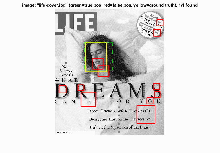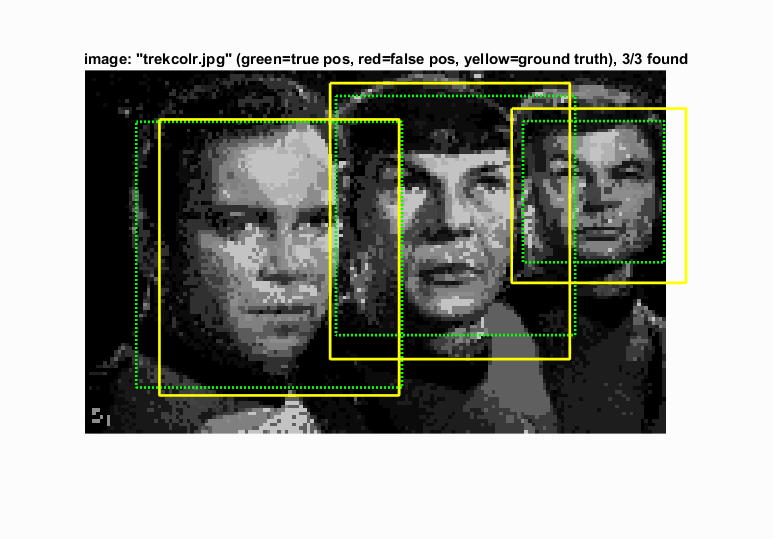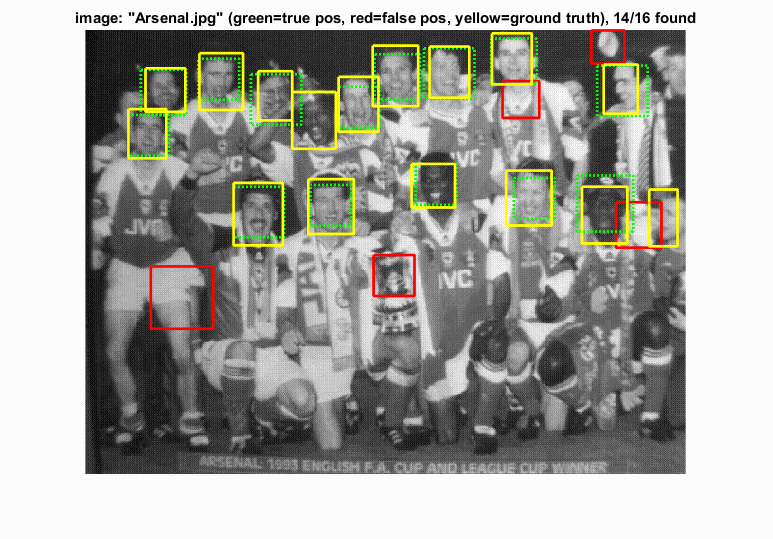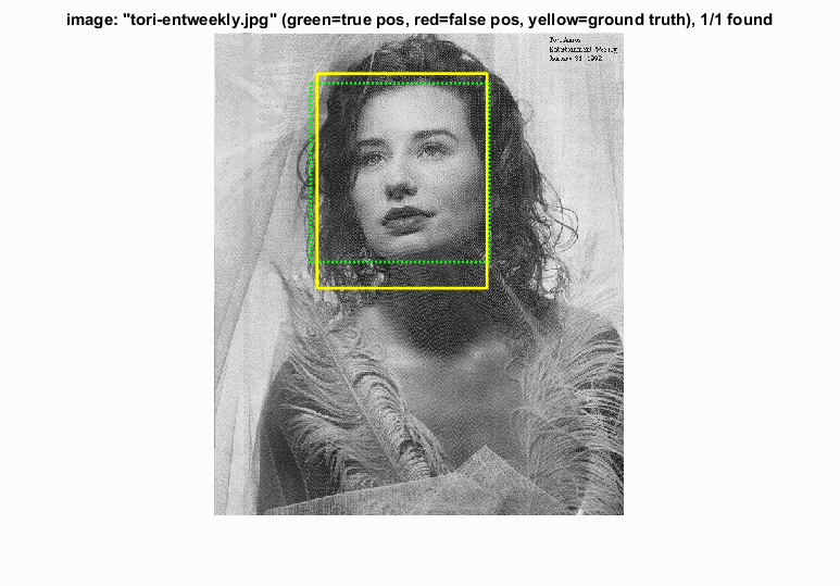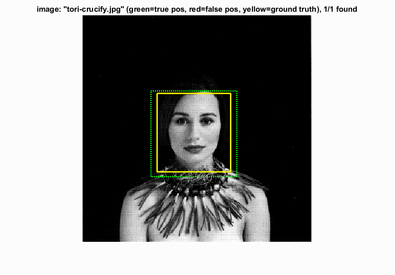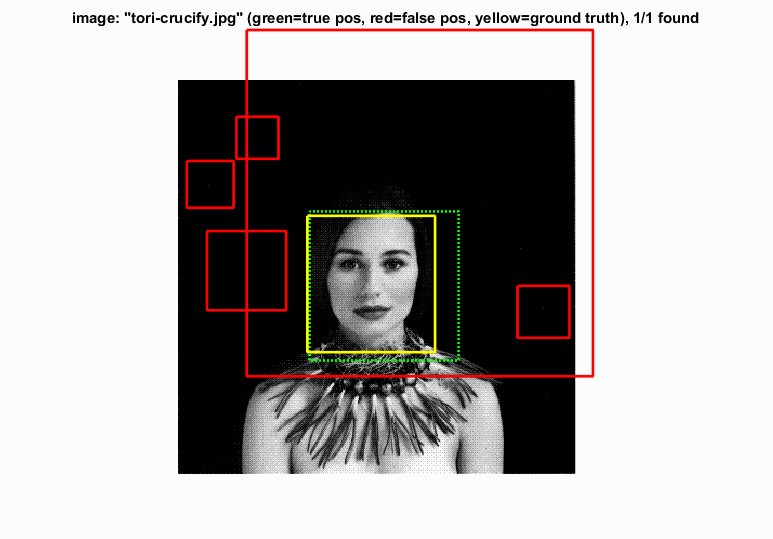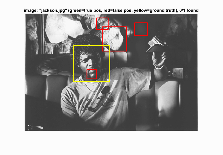 The first facial detector implemented was a single-scale detector, which did not resize the image in any way. All the single-scale detector did was use a sliding window on each test image, generate a HoG for the sliding window, and query the SVM to see whether the bounding window was a face.