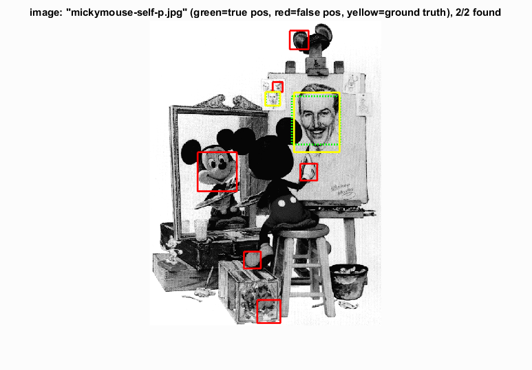 The first 3 parts of the project involved generating positive and negative features for a classifier algorithm and then training the algorithm. The positive features were created from known ground truths while negative features were randomly sampled from images that were known not to have faces. In this pipeline, the features were histograms of gradients. After the features were extracted, an simple vector machine (linear classifier) was trained with the positive and negative labeled data. As a sanity check, the SVM was tested on the training data, and as expected, performed well.