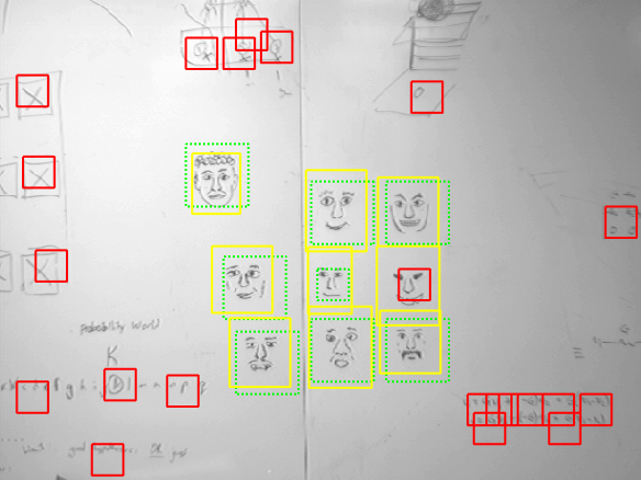 This figure is one of the images that went through the face detection algorithm. As you can see, faces have been detected indicated by the green squares.
