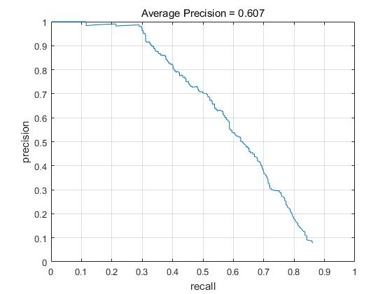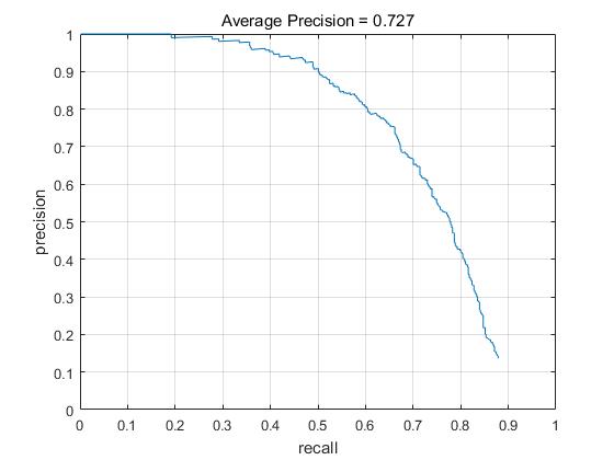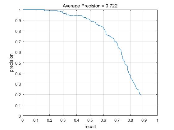 I developed a way to further improve the average precision and the detection speed. I use different search step for different scale. For example, I use small search step for small scale and large search step for large scale. I achieve 0.727 average precision. The code of run_detector.m is modified as follows: