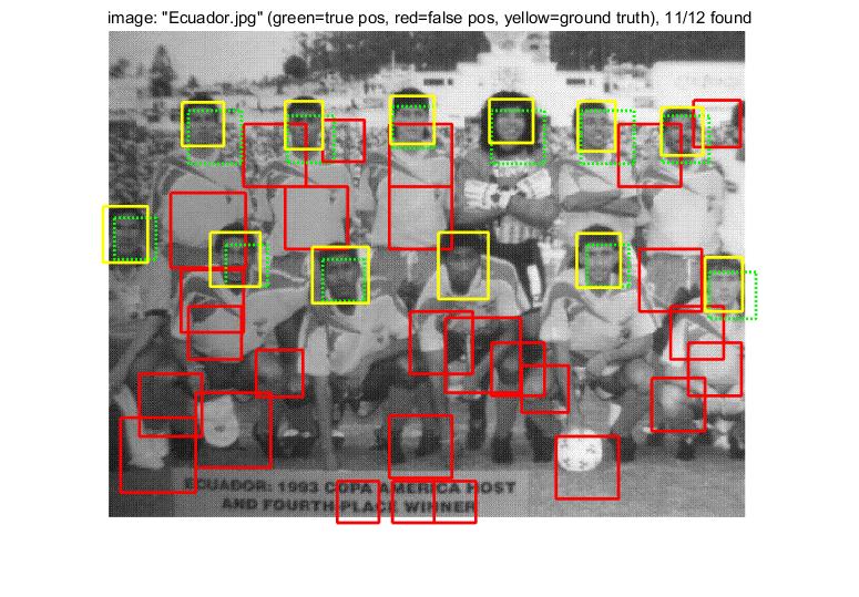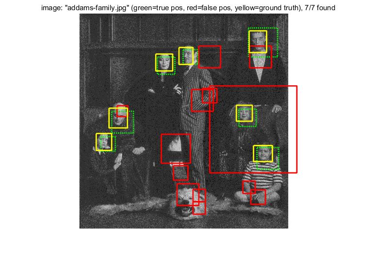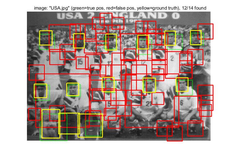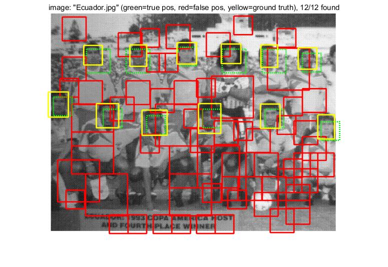 Face detection is one of the most successful computer vision applications. As an important preprocessing front end, it plays a significant role in improving a face recognition system. In this project, I implemente a baseline sliding window face detection algorithm. I also finished an extra credit by augmenting positive training data.