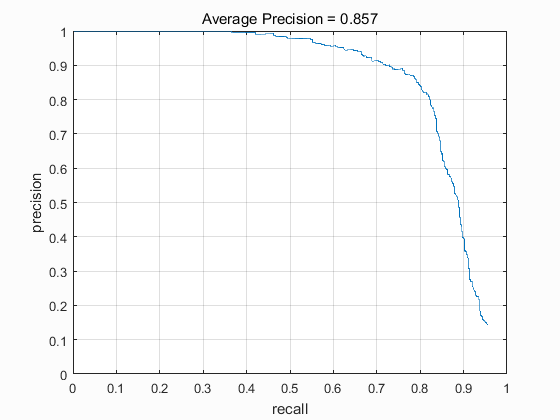 The results for multiple scales detector have the average precision of 0.857 when the step size is 6, the start scale is 1 and the scale step is 0.8: