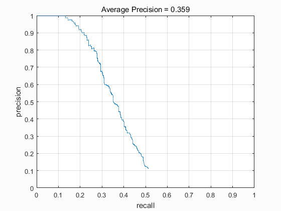 The results for a single scale detector have the average precision of 0.359 when scale is 1: