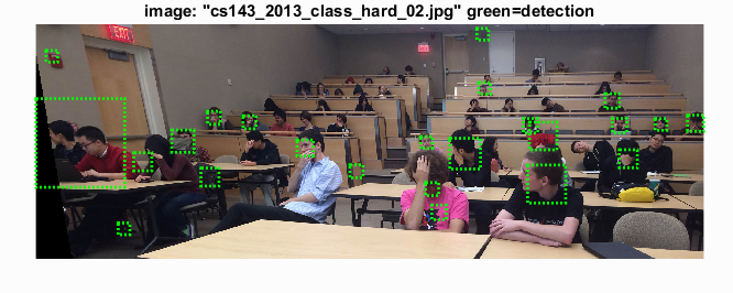 This part of code runs the classifier on the test set. For each image, run the classifier at multiple scales and then call non_max_supr_bbox to remove duplicate detections.