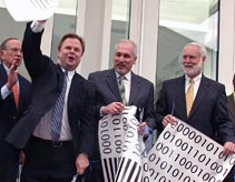 Klaus Ribbon Cutting CeremonyThe Christopher W. Klaus Advanced Computing Building (KACB) is truly reflective of the "New Face of Computing" and Klaus' vision as entrepreneur and collaborator dedicated to computing technology. Soaring glass and metal fashioned around a stunning, environmentally conscious facility stands as a physical and symbolic gateway to a new center of campus. Friends, family and associates of Chris and Krissy Klaus, along with dignitaries, industry leaders and members of the Tech community joined together to celebrate the new KACB and all the incredible research, collaboration and discovery that will go on inside. Festivities began on Thursday, October 26, 2006 with a ribbon cutting ceremony, officially opening the 414,000 square-foot building made possible by a generous gift from Christopher Klaus, founder and chief executive officer of Kaneva, Inc. and founder of Internet Security Systems (ISS) which he started as a Tech student in 1994. Five years later and at the age of 27, Klaus became the largest individual donor for the building, contributing $15 million—one of the top five largest gifts in Tech's history and the largest donation from anyone of his generation according to the Chronicle of Philanthropy. Addressing the crowd at the ceremony, Klaus said "I've given out of gratitude for what Georgia Tech gave me in the hope that each of you will be able to give back as well. This building will be the incubator of solutions, and by bringing together the brightest minds from around the country, across many different disciplines to this state-of-the-art facility, we can foster a collaborative, innovative approach--not to just discover the next big thing, but to change the world." College of Computing Dean Rich DeMillo said, "The Christopher W. Klaus Advanced Computing Building is a new gateway to the Georgia Tech campus, and represents the prominence and importance of computing and new technologies to the Institute. This building is devoted to our faculty and students who will use research and collaboration to seek out and develop those technologies that will advance our society and make an impact on the world." In addition to Klaus and DeMillo, several other officials who attended the ceremony gave remarks. Among them were Georgia Tech President Dr. Wayne Clough; Senator Sam Nunn; Georgia Governor's Office COO James R. Lientz, Jr.; and Chair of Tech's School of Electrical and Computer Engineering Gary May. "The Klaus building will bring together Georgia Tech's greatest strengths while establishing the institute as a leader in this new world of electronic devices" - President Clough. "Chris Klaus is a young man with a brilliant mind and a very generous spirit. He is also a young leader who is using his intellect and resources to put Georgia Tech on the leading edge of information technology." - Senator Nunn "The Klaus Advanced Computing Building is just a great example of a public-private partnership, but it could have never been built without Chris, so thank you for what you have done here." - Lientz, representing Georgia Governor Sonny Perdue Christopher Klaus was acknowledged and thanked many times during the ceremony for his vision, commitment, and genero sity before giving his own remarks and life lessons: "You got to take risks. Understand that the opportunities to do so rarely come at convenient times," he said. "Don't give up. If you do leave, be sure to leave in good standing so you can come back and at least give a building." "Second, have a broad conception of success. Understand that sometimes, even when you fail, you succeed. I recognized that even if ISS was a tremendous flop, I would still be much richer for it. I would have had a great learning experience. "In the end, things really do work out for the best." (For example, Klaus was able to keep the rights and profits for the scanning software he developed as an intern for the Department of Energy because the internship was unpaid. The software he developed later became the foundation for ISS.). "Some of your best learning takes place outside of the classroom." "Everything you put in the world has a ripple effect. What you do makes a difference. Take what you learn from Georgia Tech and share it with others." Klaus was joined by President Clough, Dean DeMillo, Gary May, Senator Nunn and James Lientz, Jr. in cutting the ceremonial ribbon to open the building, galvanizing the College of Computing at Georgia Tech and the Atlanta area as major players in the digital economy. ![]()