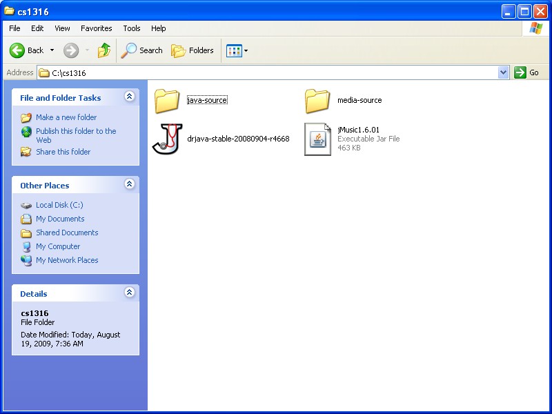 | 2. Unzip all zip files (java-source, jMusic, mediasources) and put them into the cs1316 folder. |