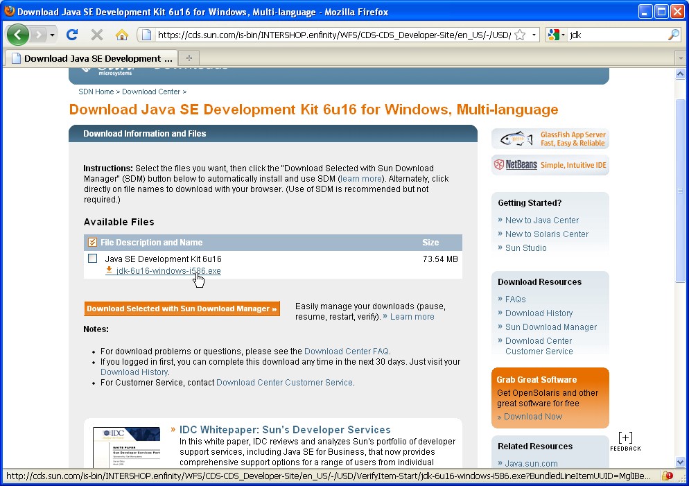 | 5. Click on jdk-6u16-windows-i586.exe |