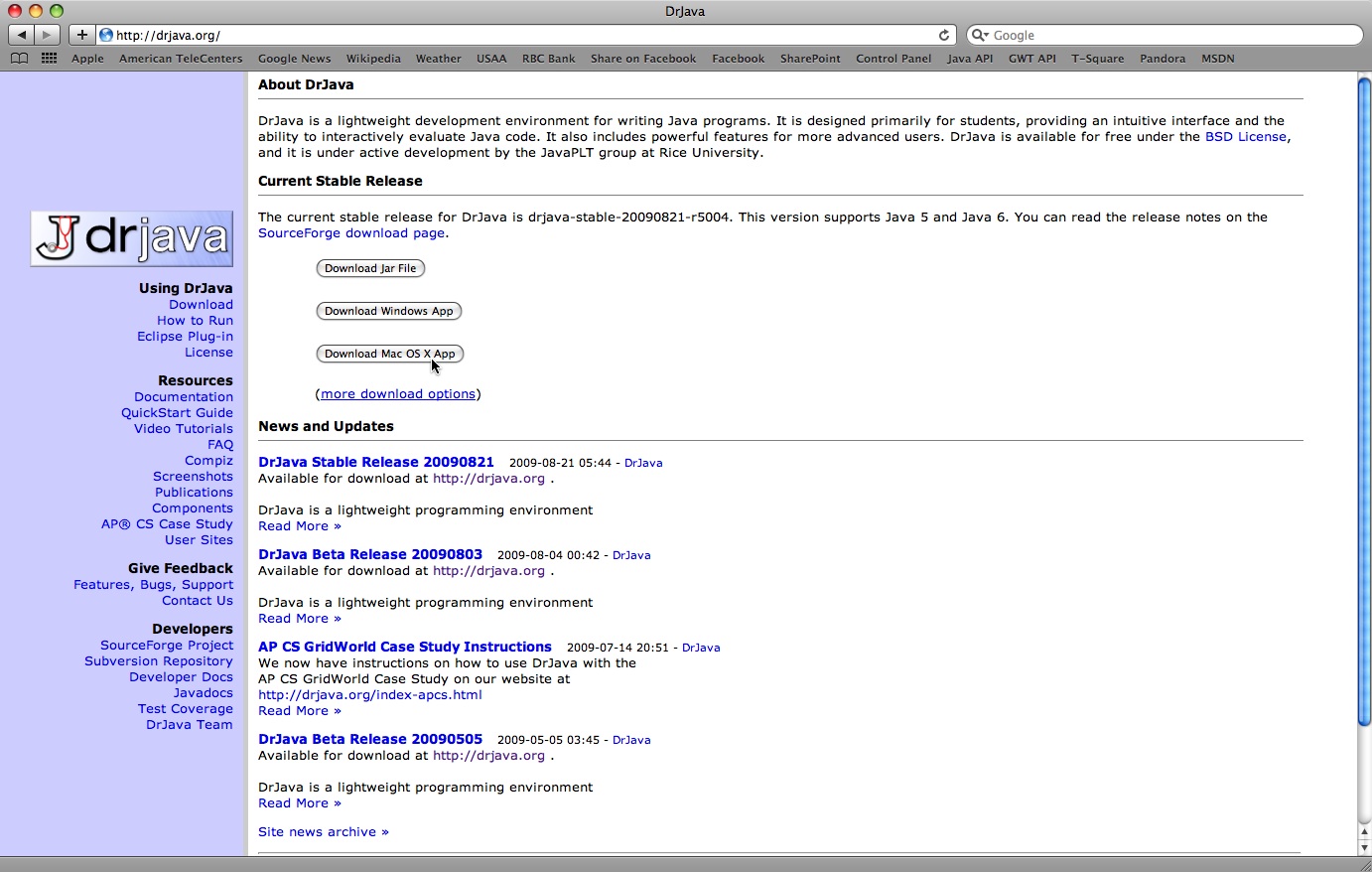 | Dr. Java is the recommended and supported IDE for the course, supported by the TA's. You may use a different IDE such as Eclipse if you would like. |