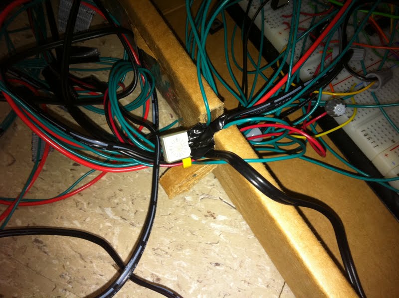 Attach the sensor disable push button and the sensor height justment dial to the structure. Do this while keeping bunches of wireing away from the user.