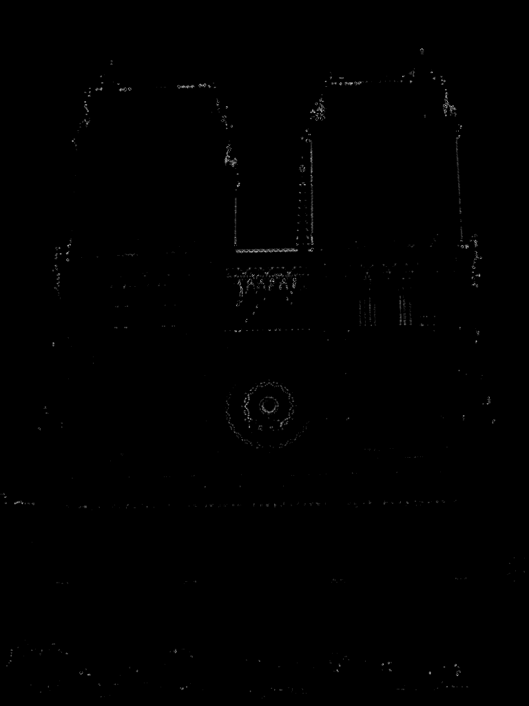 Left to right, Harris response image, Hysteresis thresholded image and Non-Maxima suppression applied image from steps 1.4, 1.5 and 1.6, respectively.