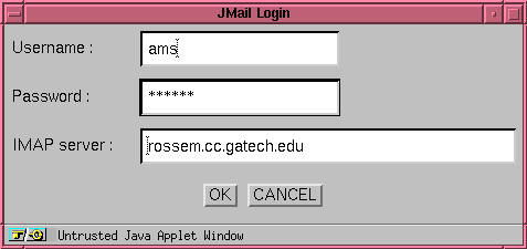 the JAVA mail applet accesses Ian Smith's IMAP classes