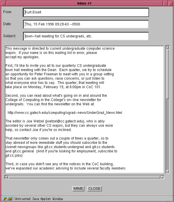 a certain message they need to read/reread is on that particular machine. The users of the JAVA mail reader only need two