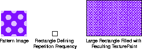 The TexturePaint class provides an easy way to fill a shape with a repeating pattern. When you create a TexturePaint, you specify a BufferedImage to use as the pattern. You also pass the constructor a rectangle to define t he repetition frequency of the pattern, as shown in Figure 2-9.