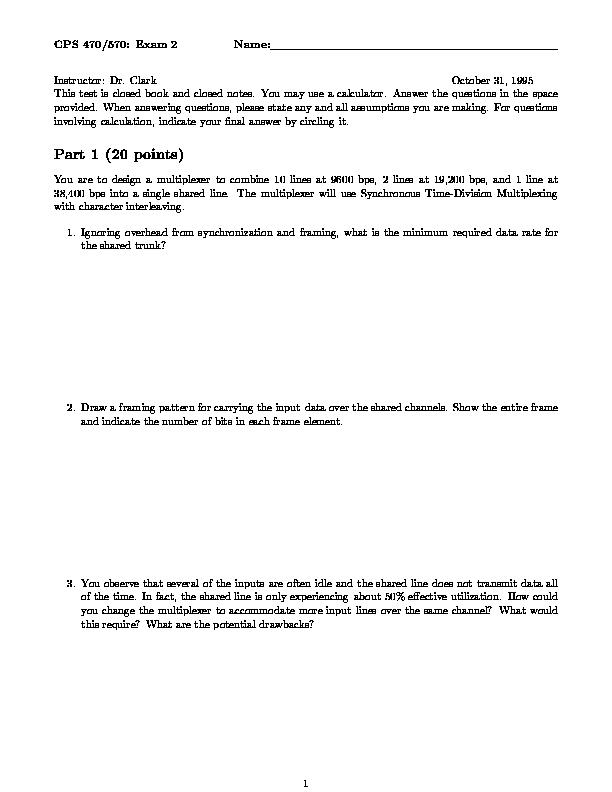 CPS 470/570 : Exam 2, Fall 1995