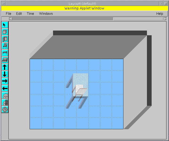We have built several applications using the timewarp toolkit, including a structured drawing editor and a text editor. Here we present an interior design application that allows users to collaboratively edit the layout of furniture and interior walls in an office setting.