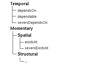 Within the Temporal set there are three roles that actions may play. The dependsOn role indicates that the action depends on some other action being earlier in the timeline. The dependable role indicates that the action may be used as a target of a dependsOn relation. The seversDependsOn role indicates that the action may break, or sever, any downstream dependsOn references to an upstream dependable action.