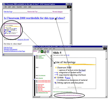 Collaboration can be a crucial part to any educational experience. We have incorporated a collaborative discussion space, or CoWeb, developed by other Georgia Tech researchers. The advantage of combining CoWebs with Classroom 2000 is that discussions are now anchored to relevant parts of the lecture, and the lecture extends into other activities outside of the classroom experience.
