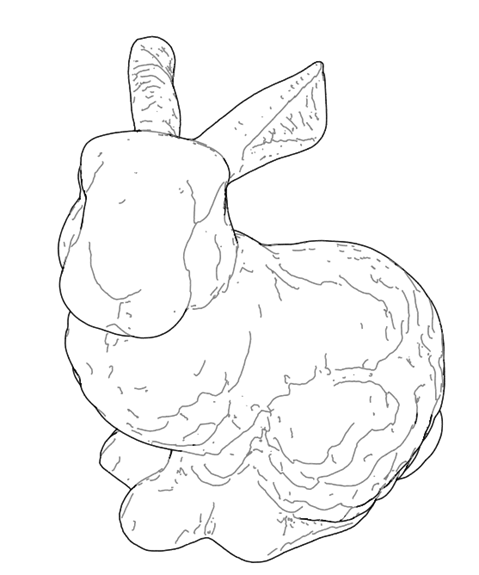 | Doug DeCarlo, Adam Finkelstein, Szymon Rusinkiewicz, Anthony Santella, "Suggestive Contours for Conveying Shape," SIGGRAPH 2003 | |