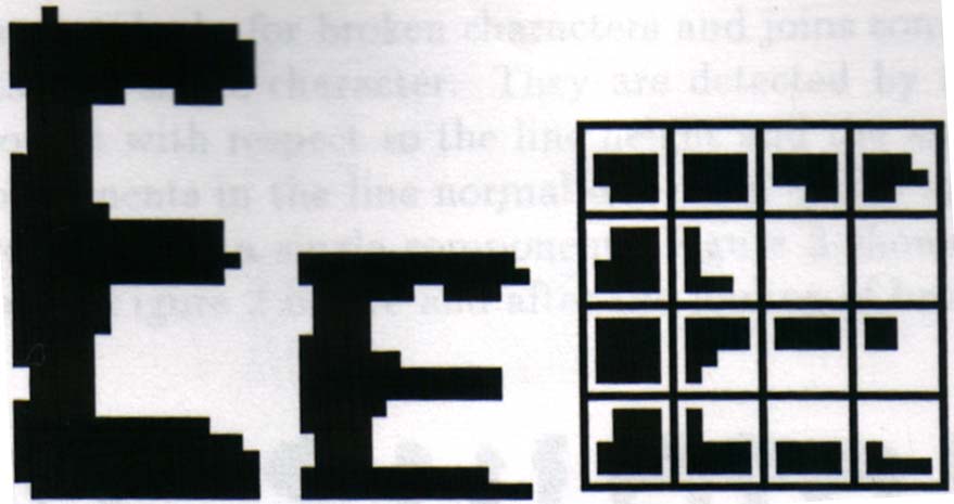 The optical character recognizer approach is based on feature extraction coupled with the application of the bayesian classifier. Here, the normalized character is partitioned into regions of size 4x4. Each region is coded to produce a feature vector with 16 elements.