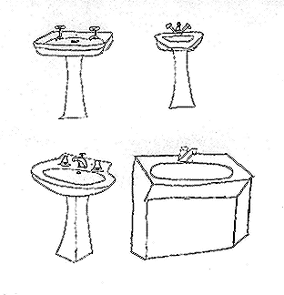 This sketch shows some types of sinks that can be placed in a bathroom. Users can select a sink of their interest and view it separately in detail.
