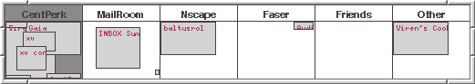 The ability to overlap windows has both advantages and disadvantages. More information can be displayed, but the windows can be buried beneath other more recently used windows. There are two solutions to this problem, one is get a bigger monitor, but this only works for so long as users will expand their document to fill the space. The other common solution is virtual windows of some sort. Card and his co authors, in 1984, called the concept "rooms", where each room has a different purpose and layout of windows. This can be achieved in UNIX with a window manager such as "tvtwm" or "fvwm".