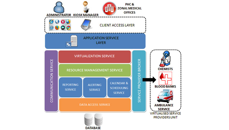 The project aimed at developing and demonstrating how ICT can be used to improve Health Service Delivery across the nation. The project involved demonstrating how remote medicine combined with service virtualization can help reduce the time for delivering treatment, especially in rural areas. The technology used for this was ASP.NET, Silverlight, Embedded Modules using ATmega128 and Windows Forms Application using C#.