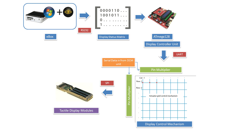 This project aims at redefining the way in which visually impaired individuals interact with computer systems moving from the predominantly used audio based assistive technologies to a more natural way of interacting using page length tactile displays and braille. The project is based on an evolving concept “graphical user interface” that can be used by the visually impaired to interact and perform day to day activities on a computer and use the internet not only for text but also for images. This project was amongst the top 15 amongst thousands of entries presented at Microsoft Imagine Cup 2011, New York.