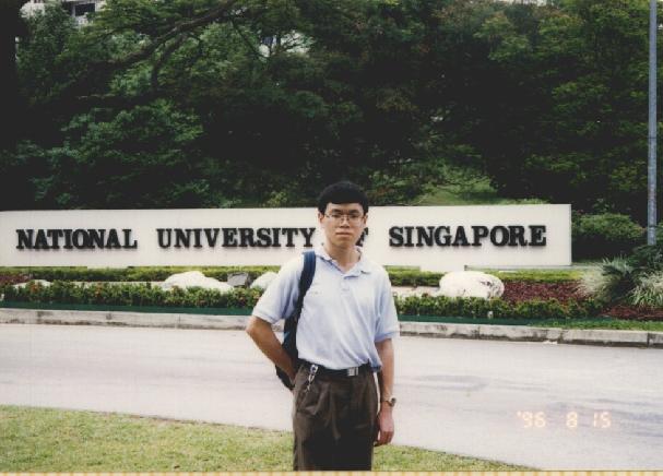 I didn't spend much time on English, though I got 91.5 percent ("excellent") in the National College English Test Level 4. When it came to Level 6, I just got 78.5 ("pass"). Since the days when I was still in high school, all the relatives and friends had been advising me to work hard on my English and look for a chance to go abroard as I had some advantages others didn't have. But I kept avoiding this idea until a sunny spring day in 1993, when I was casually looking at a world map, a word suddenly came into my mind: "WORLD". Why don't I go to the world? Well, from then on I began to study English. A few months later, I took TOEFL in Oct 1993, and then GRE general in Feb 1994. The preparation was inadequate, I only got 597 in TOEFL and 1940 in GRE(Verbal--430, Quantative--800, Analytical--710). At this point, I found a chance in National University of Singapore (NUS), so I set out to apply to it.