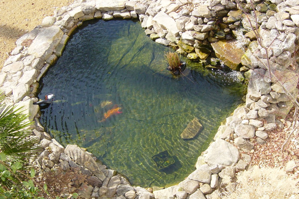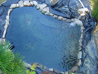 The completed pond. Everything's in place and the fish are happy. We