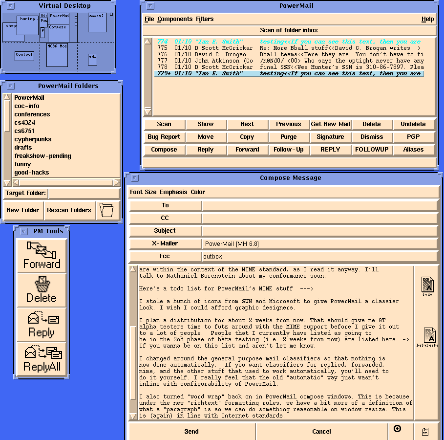 PowerMail is a graphical, MIME-compliant mailer which was written by