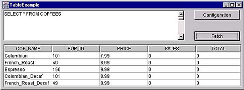TableExample2 program uses the SQL editor to execute a query, the GUI interface
