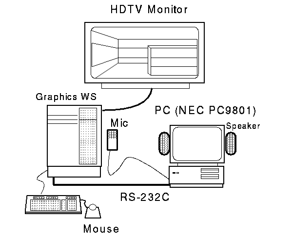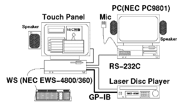 Fig. 3 shows the system structure. The system consists of an engineering workstation (NEC EWS-4800/360) to manage the multimedia database system and synergistically understand the multimodal input, a PC (NEC PC-9821) for voice recognition, and a laser disk player (SONY LVR-3000N) for storage of dynamic image data.