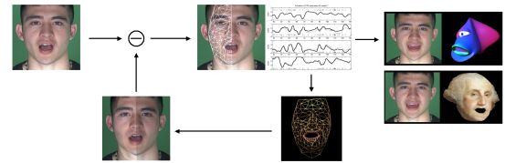 Analysis by Synthesis method to extract, code and re-target facial motion