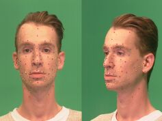 Based on the selection of 20 facial features on one single image in rest position, the original 3D model is adapted to any new subject's morphology. The linear deformation of this new shape are coded by the same FSP extracted from the reference speaker (articulatory hypothesis).
