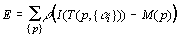 Let p be a set of 3D model points with an associated intensity M(p),