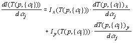 T from some model point to screen coordinates with a parameter set {αi},