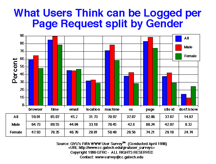 browser (59.0%), the user's email address (45.2%), the user's operating