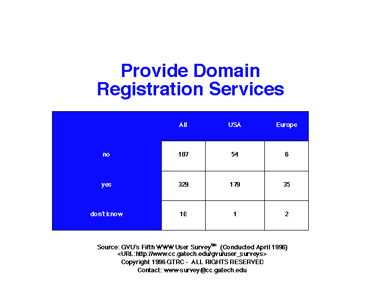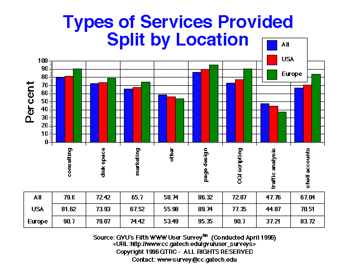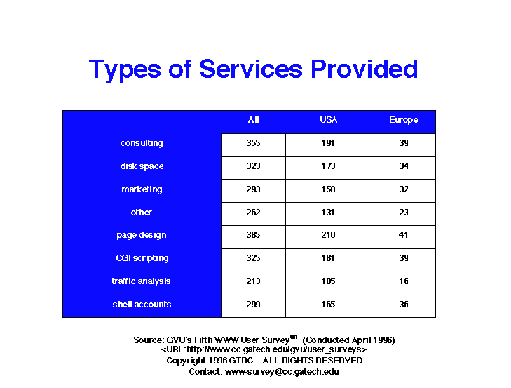 This question attempts to gain an idea of what types of services Web Service Providers (WSPs) are offering.