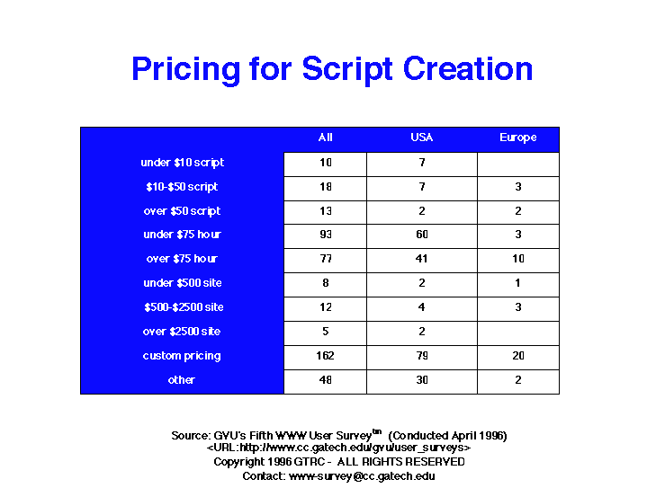 fourth, 65.7% fifth), page design (78.1% fourth, 86.3% fifth), CGI scripting (57.4% fourth, 72.9% fifth),