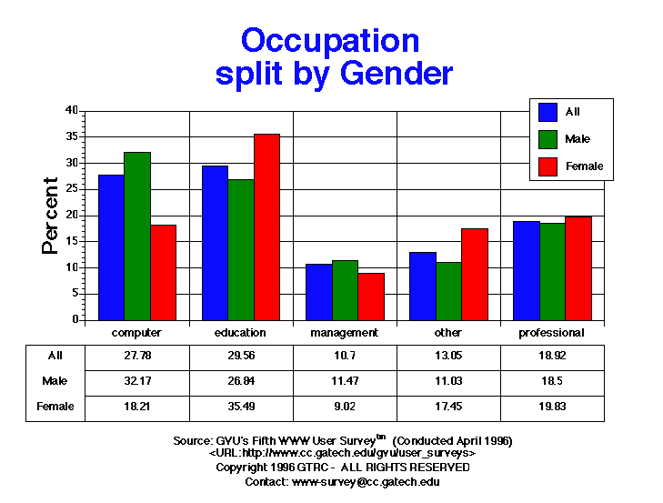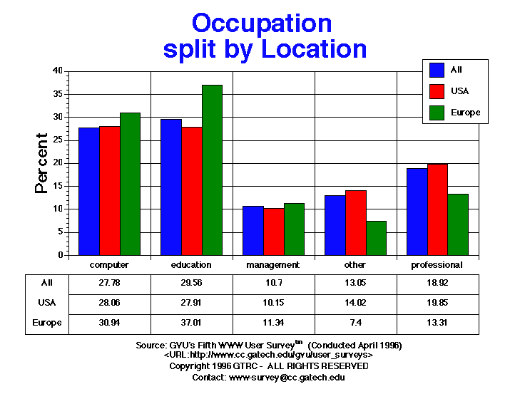 | occupation | All | Male | Female | USA | Europe | 19-25 | 26-50 | 50+ |